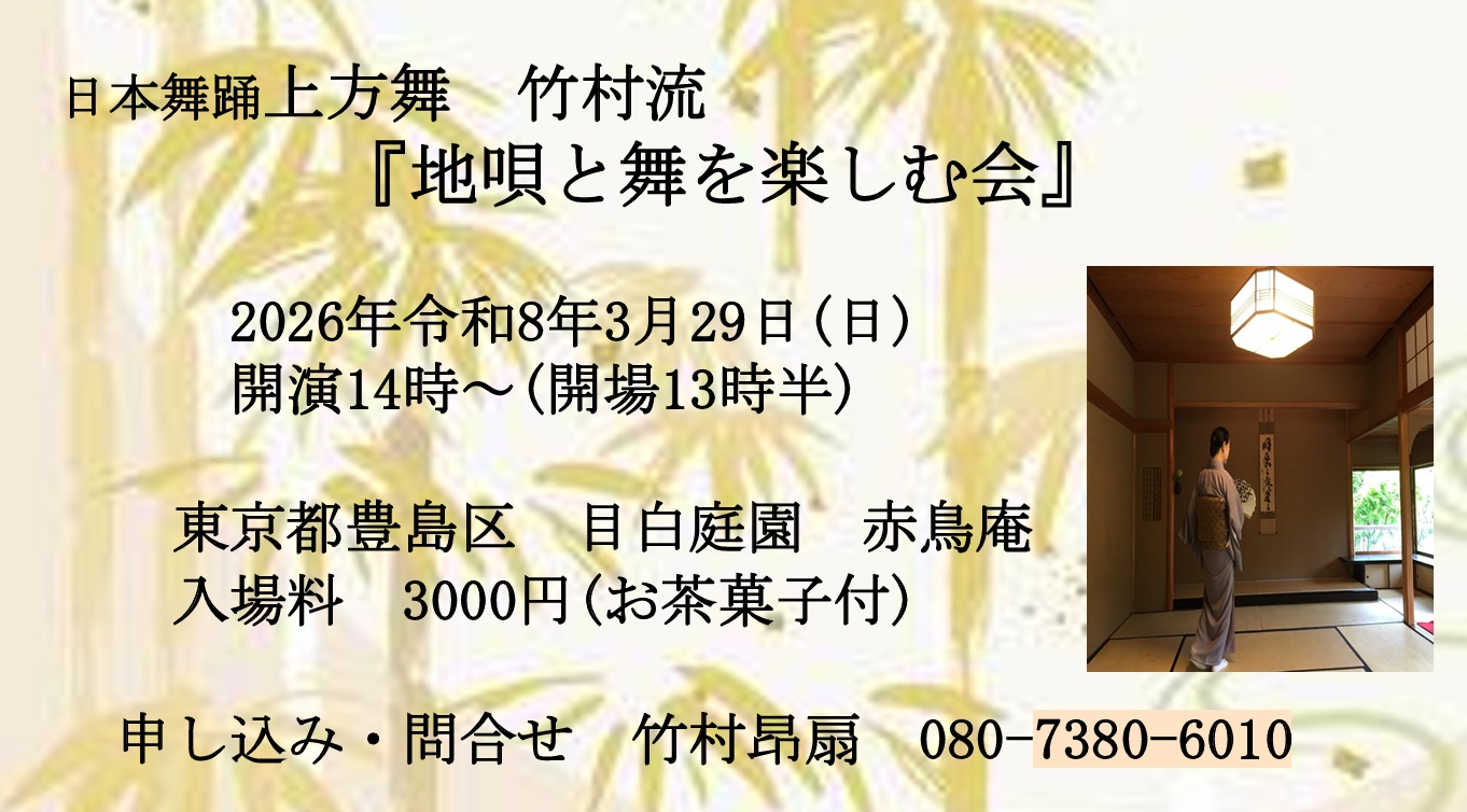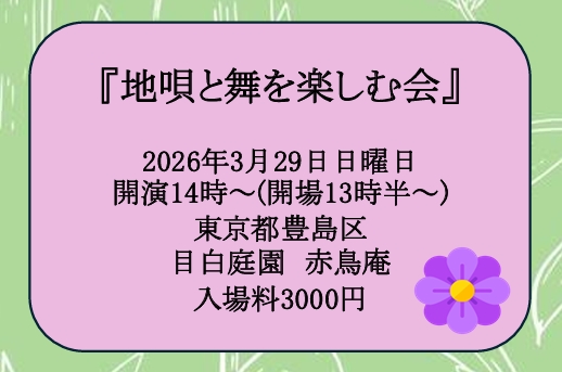 【お知らせ】イベント「3/29(日)目白庭園 地唄と舞を楽しむ会」チラシUpしました