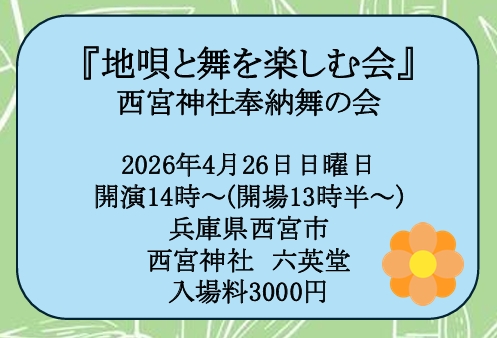 【お知らせ】イベント「4/26(日)※西宮神社奉納舞※ 地唄と舞を楽しむ会」開催します