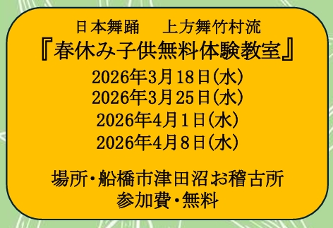 住所:千葉県船橋市前原西5-14-12 竹村昂扇上方舞研究所