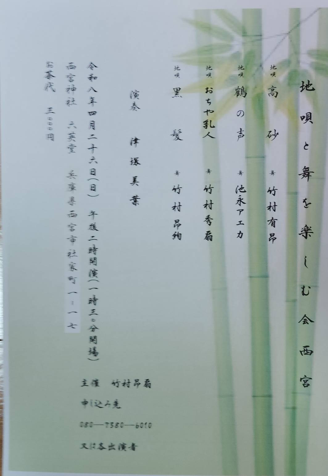 上方舞竹村流 家元竹村昂扇主催 舞の会 地唄と舞を楽しむ会 ※西宮神社奉納舞※ 日時:2026年4月26日日曜日 開演午後 14時〜(開場13時半) 場所:兵庫県西宮市 西宮神社 六英堂 入場料:3000円 お問い合わせ先 上方舞竹村流本部事務局 電話:080-7380-6010 メール:y.ana.kousen@gmail.com ※画像をクリック※ <最初のページに戻る>